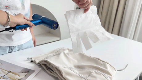 可以看到,风扇开启后雪地裤后面的纸条纹丝不动,御寒防风力Max,完全扛得住秋天的嗖嗖冷风!