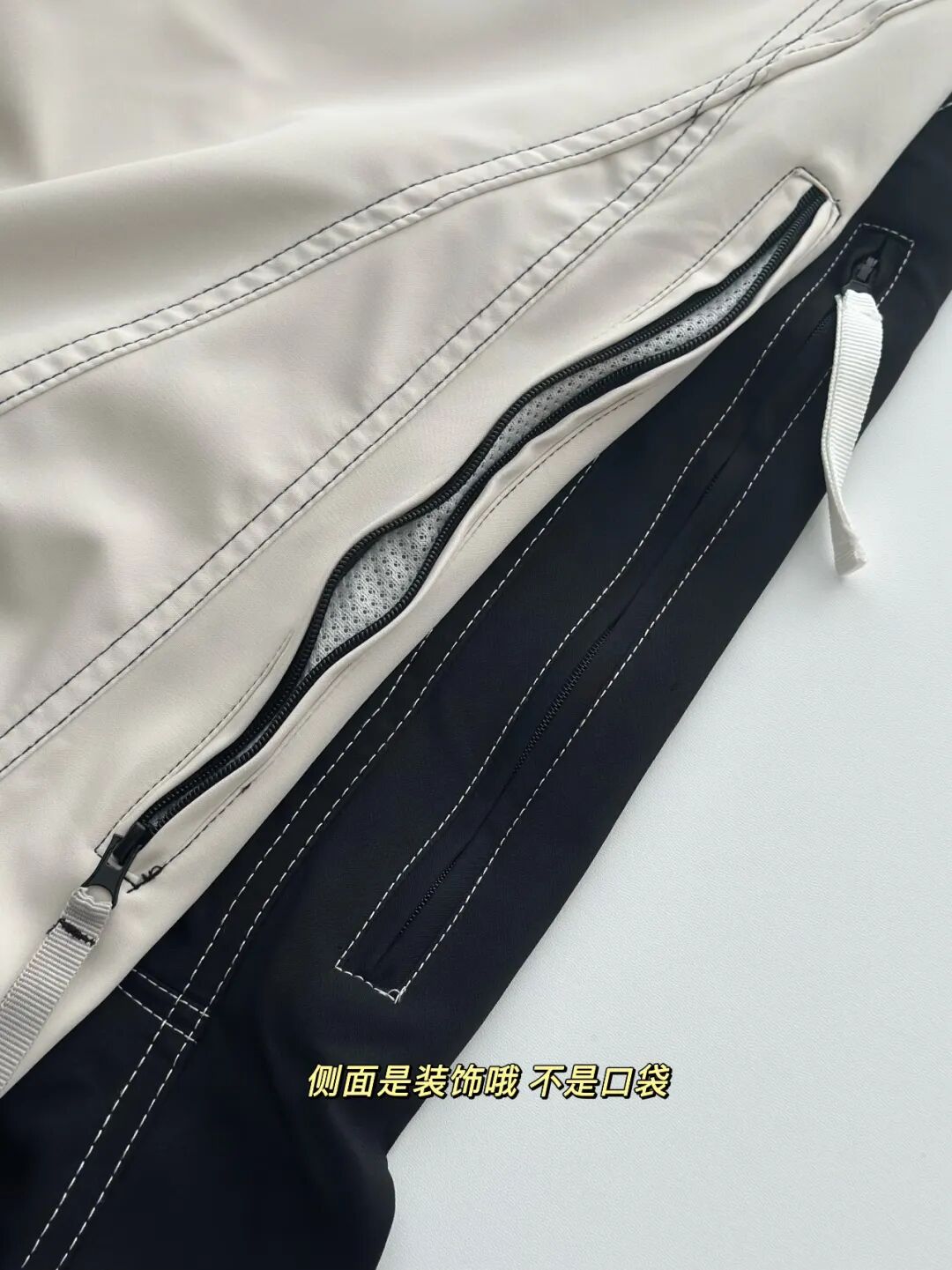 往下的撞色织带拉链是装饰哈,增添了裤子强烈的视觉对比感。