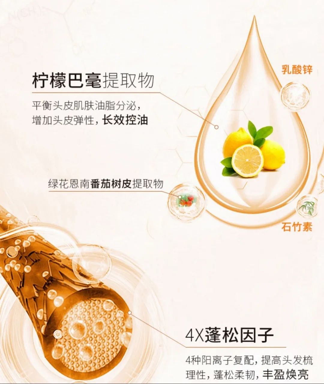 洗发水的核心成分是柠檬巴毫叶提取物,它可以有效平衡头皮肌肤油脂分泌,真正从源头减少头发出油,让头皮和发丝保持洁净清爽。