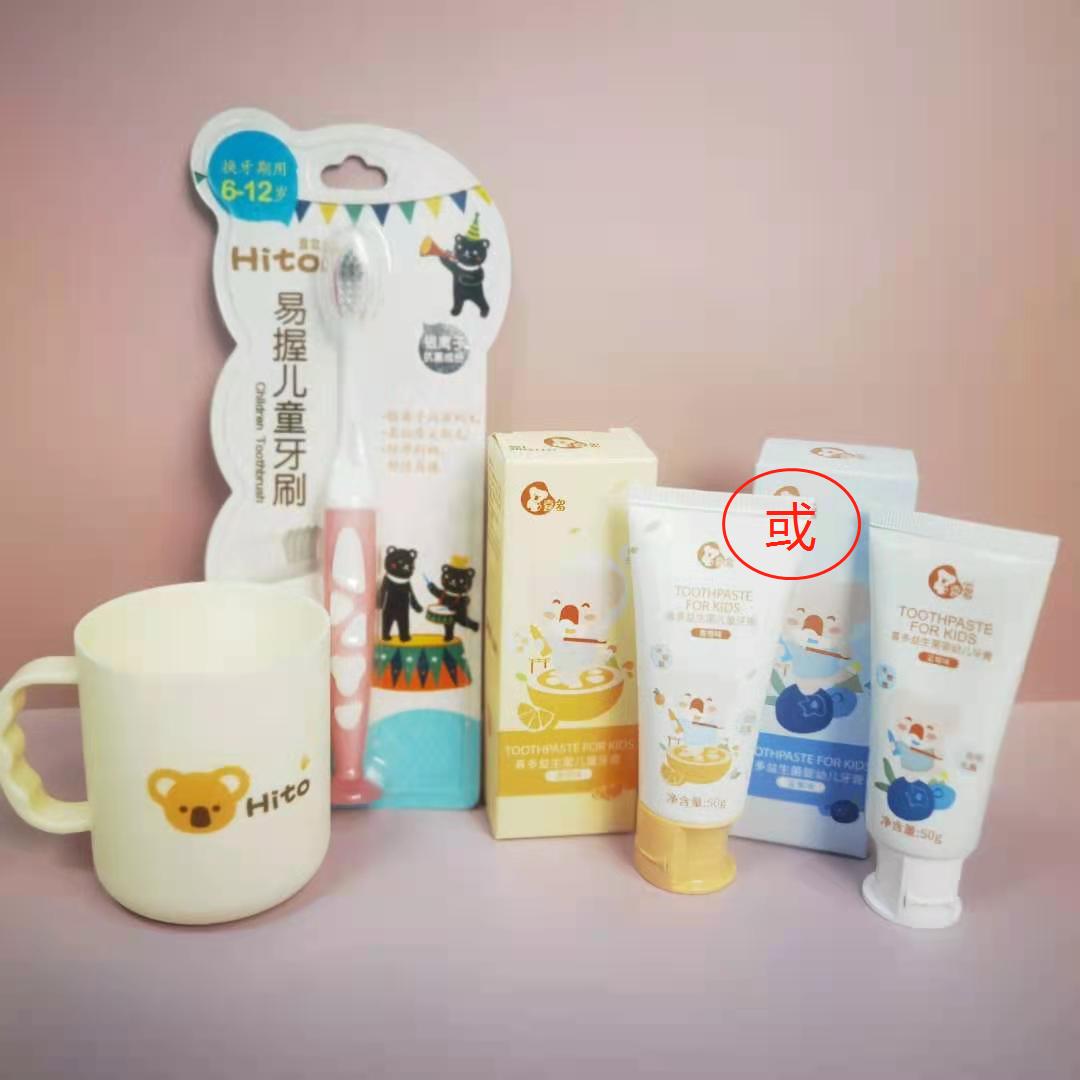 喜多益生菌儿童牙膏(香橙味/蓝莓味)+儿童牙刷6-12岁粉色+漱口杯