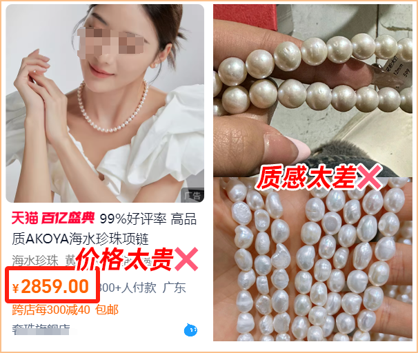 某宝同品质一对珍珠耳钉都能卖上百了:
