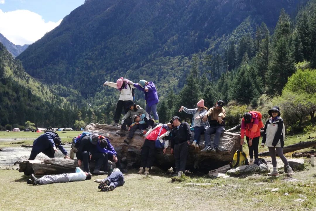 最后一天在月亮湖环湖,远处草甸上的马儿在吃草,大家站在一棵枯树上跳舞,有人记录有人观看,就这一刻所有人从现实生活中抽离出来,交给自然。如果说接受户外的部分苦累是户外精神的一部分,那么享受当下也同样不可或缺。