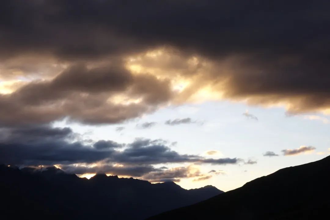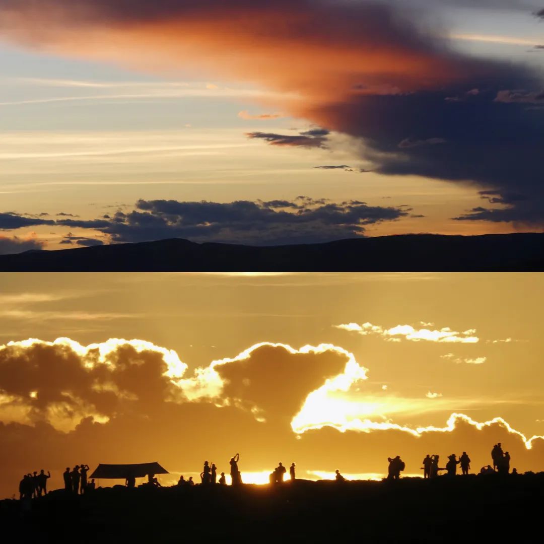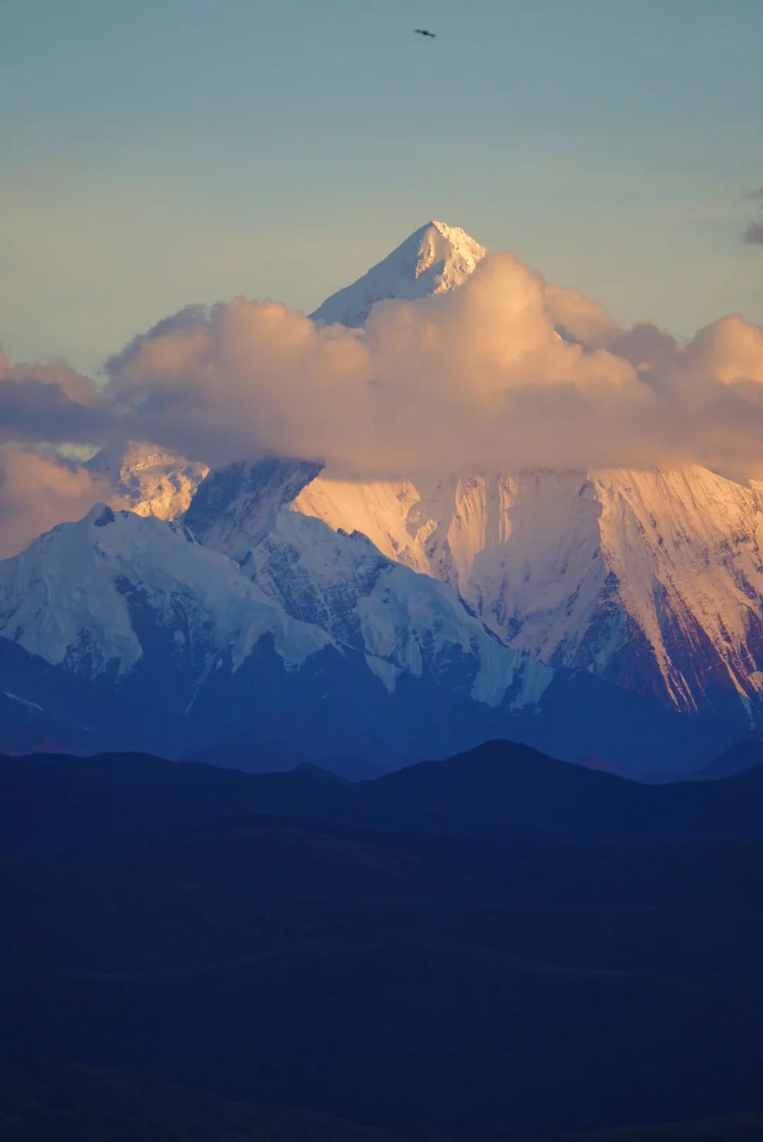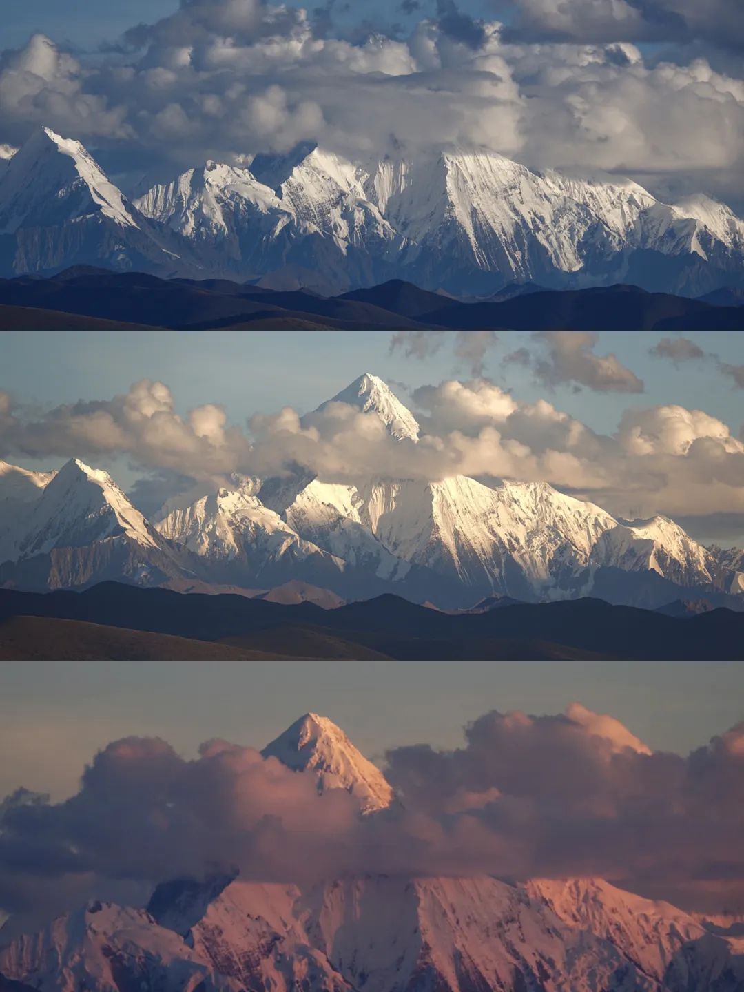 开始远处的贡嘎群山被厚重云层遮挡,接近日落时分,云层散到山腰,贡嘎主峰终于显露出来,那一刻我竟然有流泪的冲动。
