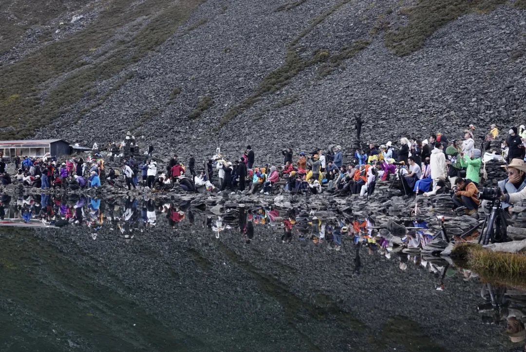 到达山顶大概是下午4点左右,乍一看很容让人感到失望,长枪短炮插在湖边,但美好是需要等待的。