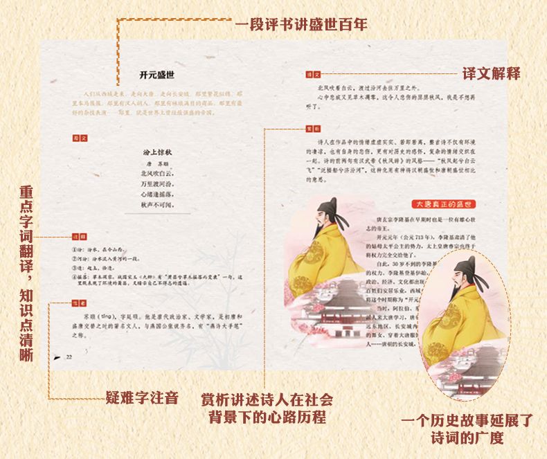从诗人、注释、讲解、赏析再到人物、事件、典故.......全方位、多维度构建孩子的历史观。