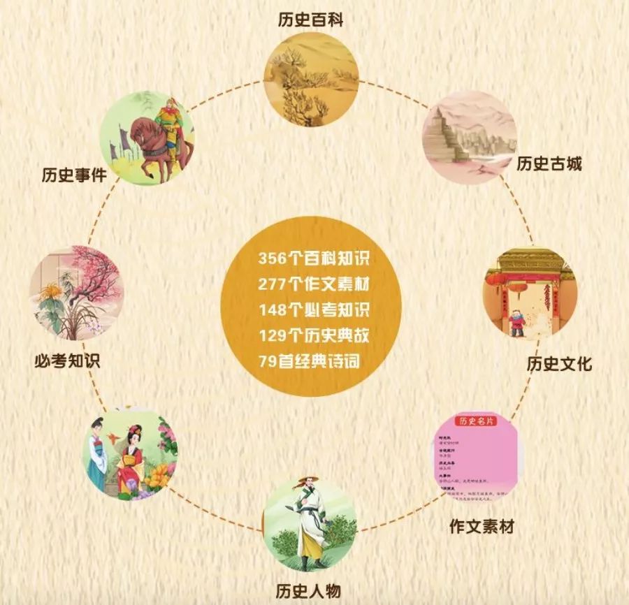 3.365个百科知识,277个作文素材,148个必考知识,129个历史典故,79首经典诗词,一条历史线,学会古诗词;一条诗词线,读懂大语文。
