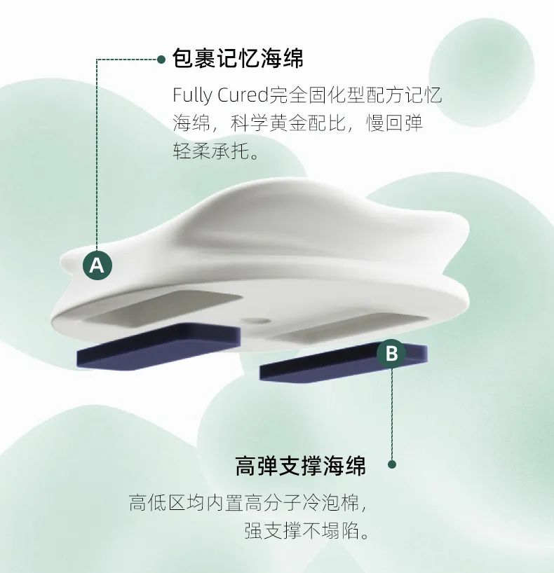 枕头有高枕区和低枕区,高度分别为10CM/8CM。