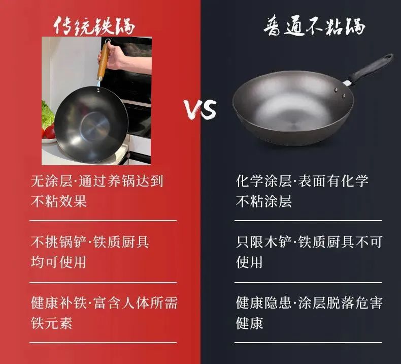 可能很多人觉得铁锅土土的,选择更漂亮方便的不粘锅。
