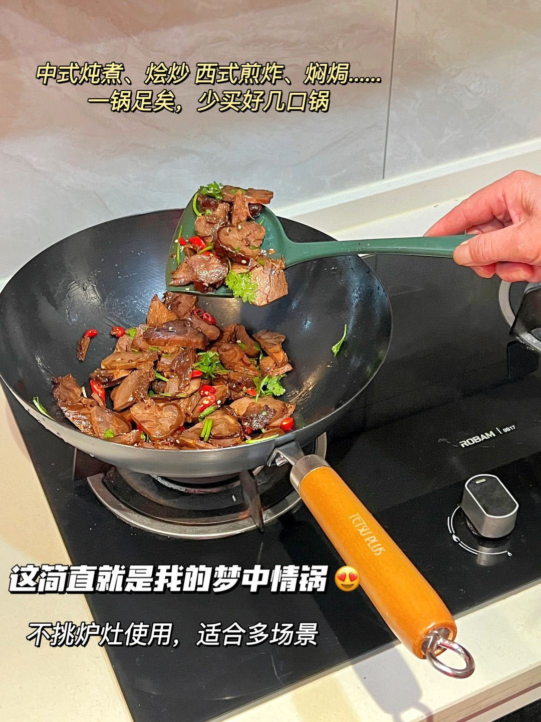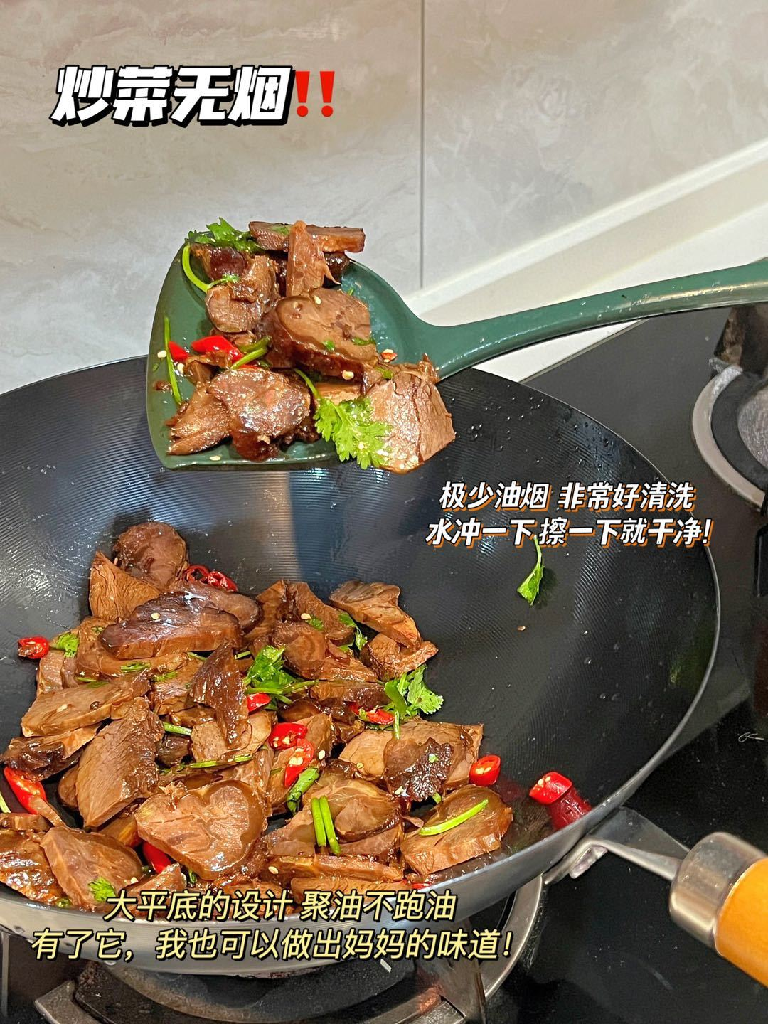极铁锅的导热效率高,让食物受热均匀;炒得快,食材水分流失少,炒出来的食物口感自然更好。