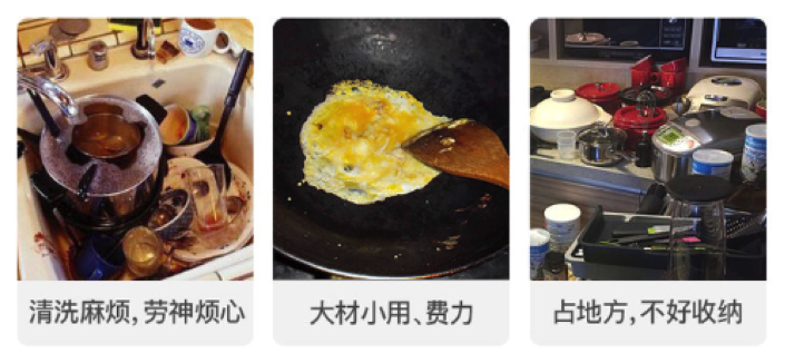 就算心血来潮,锅碗瓢盆全备齐,每次吃完,一堆东西要收拾也很烦,一来二去,基本就闲置了