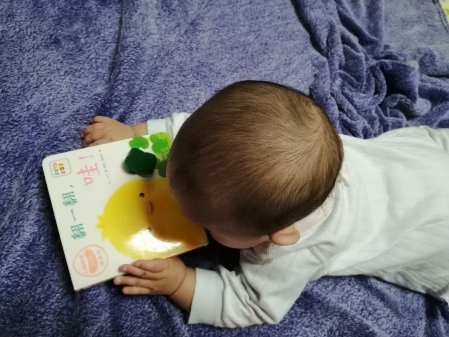 这本书很贴切最近在联系翻身的宝宝,趴着的时候也能把小鸡球球“抓来抓去。”