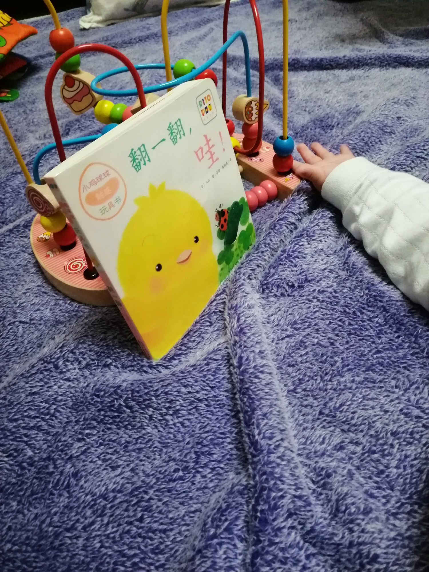 目前家里所有的书,也只有小鸡球球我可以放心的给宝宝玩,两个小手可以拿起书了,情绪好点时还能翻上两页。