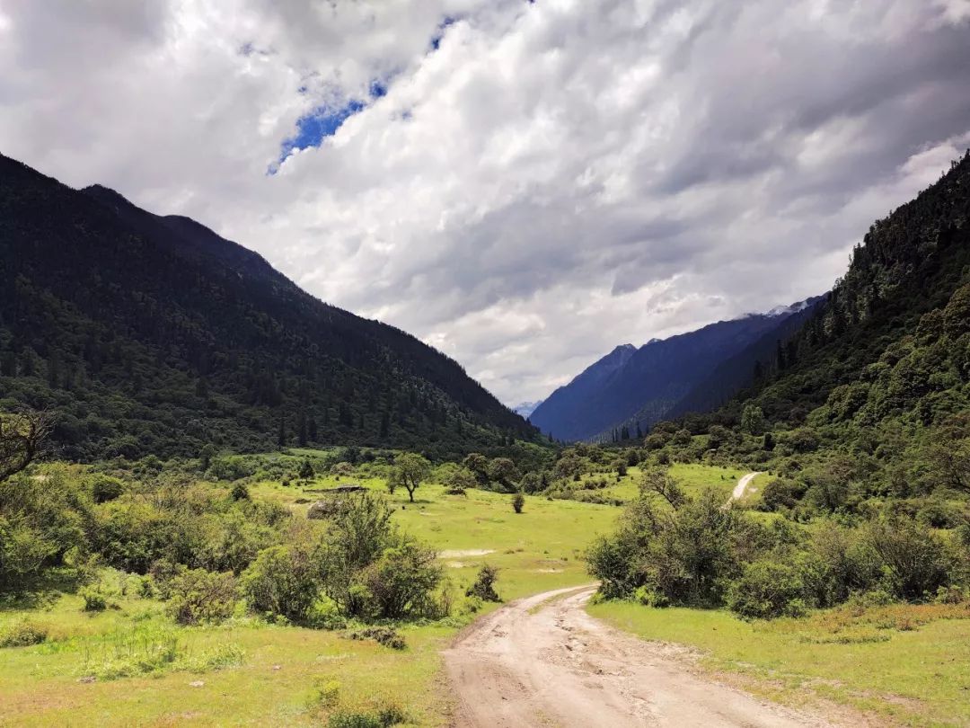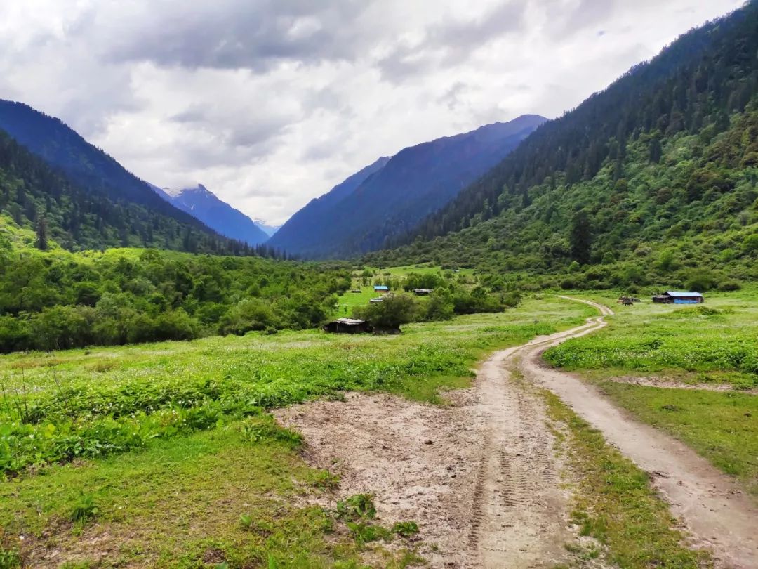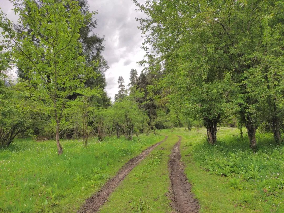 告别了这两个女人后,我穿过了整个村子,开启了此次鲁易线的徒步。眼前这个山谷很开阔,似乎是一个牧场。而机耕路也在我眼前蜿蜒曲折的铺向远方,没有中断没有尽头。此刻大片的乌云也布满了整个天空,我心中暗喜,因为乌云为我遮挡了很多容易晒伤皮肤的紫外线。