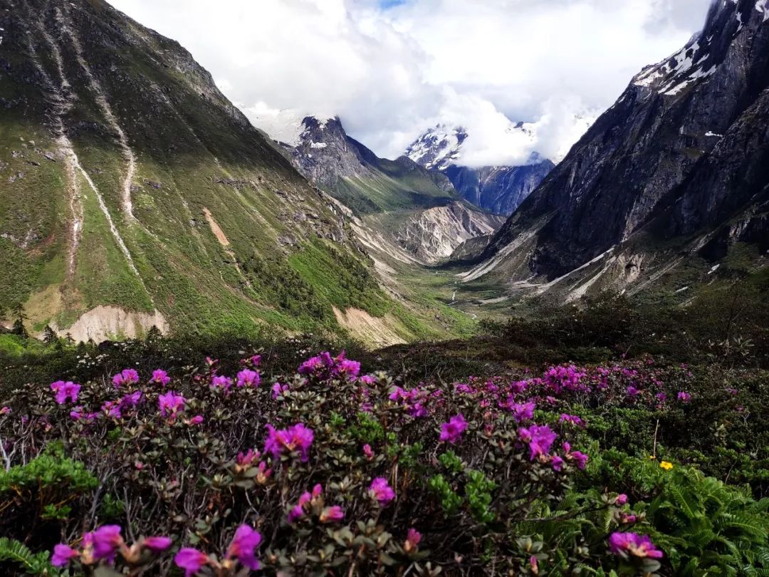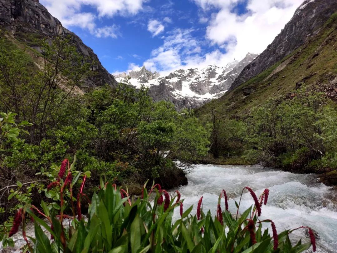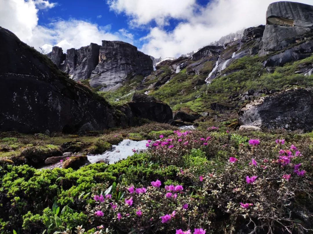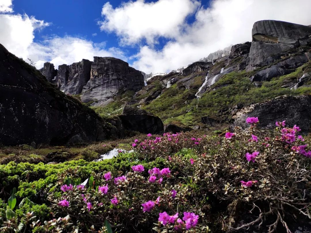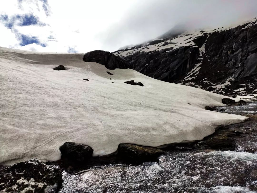 走过这片花海,望向山谷尽头,出现在我眼前的是披着一层薄雪的陡峭湿滑的岩壁。它如同一堵巨大的墙挡住了希望,隔绝了生死。