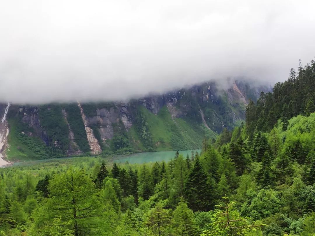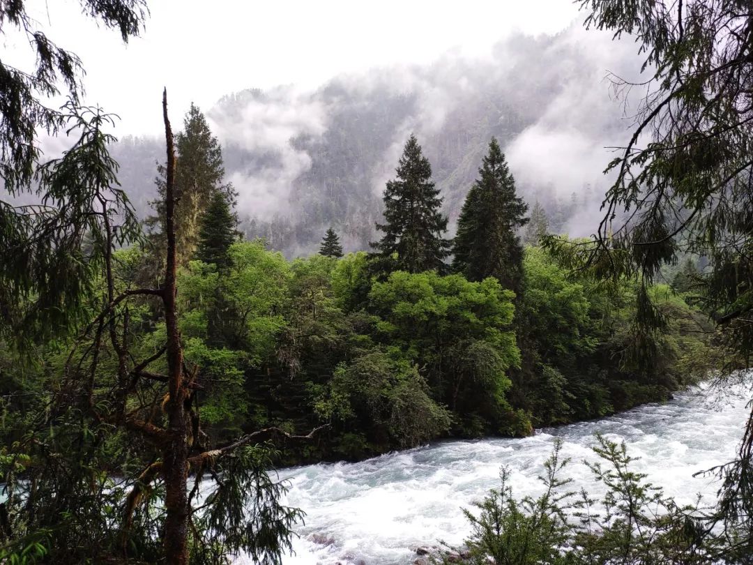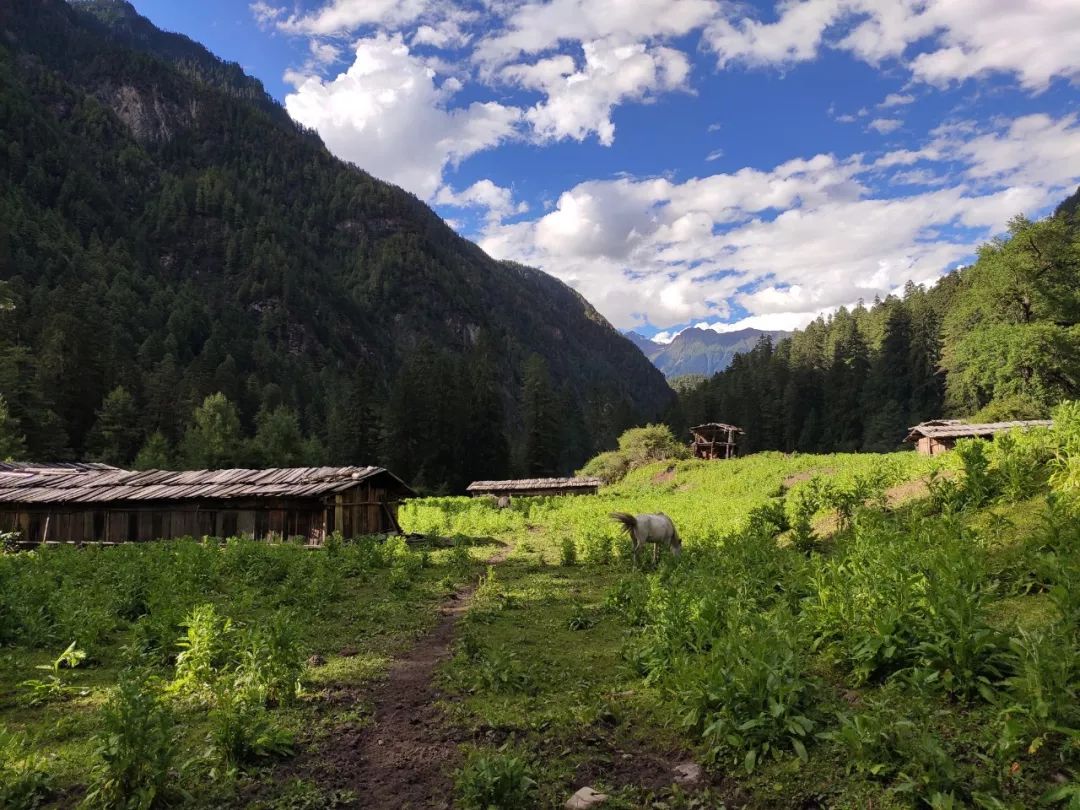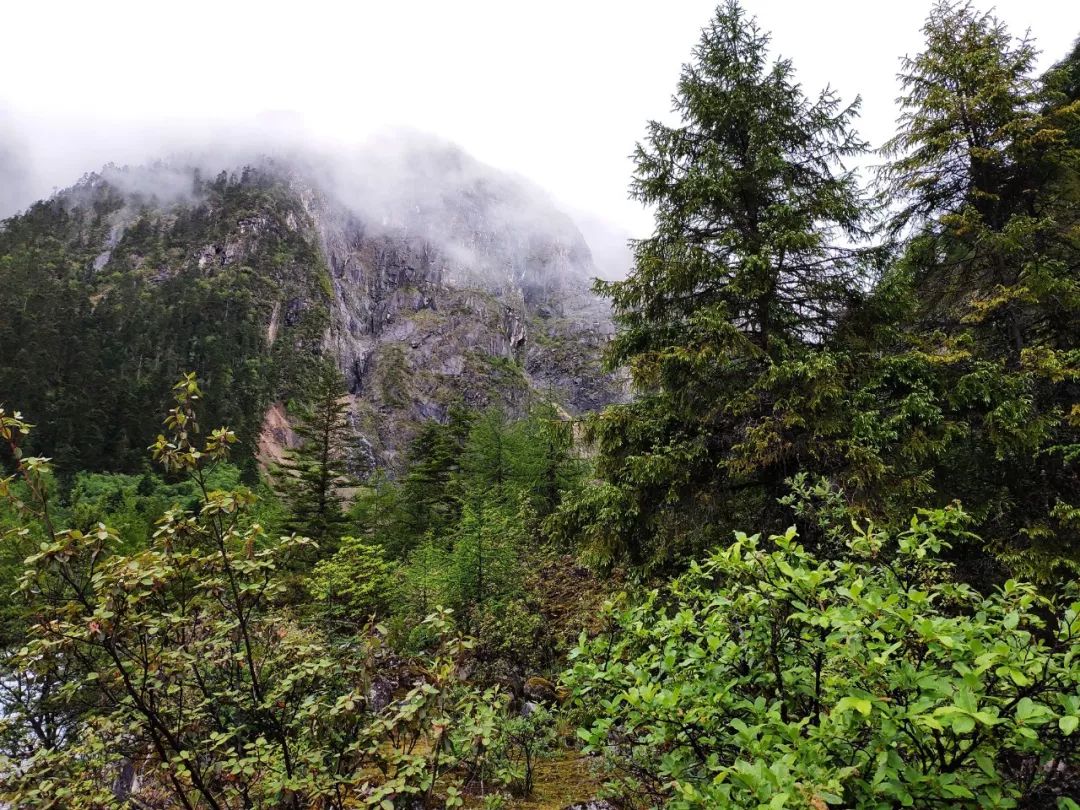 本来想早点出发的,但是雨一直下到九点多才停止。雨停后赶紧拔营。藏东南的路线雨季就是这样,每天早上和傍晚肯定要下雨的。雨后整个山谷云雾缭绕,如同害羞的少女,始终蒙着一层面纱。