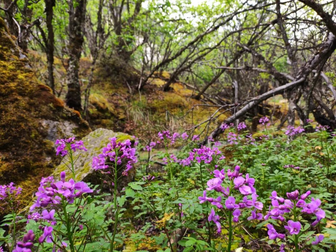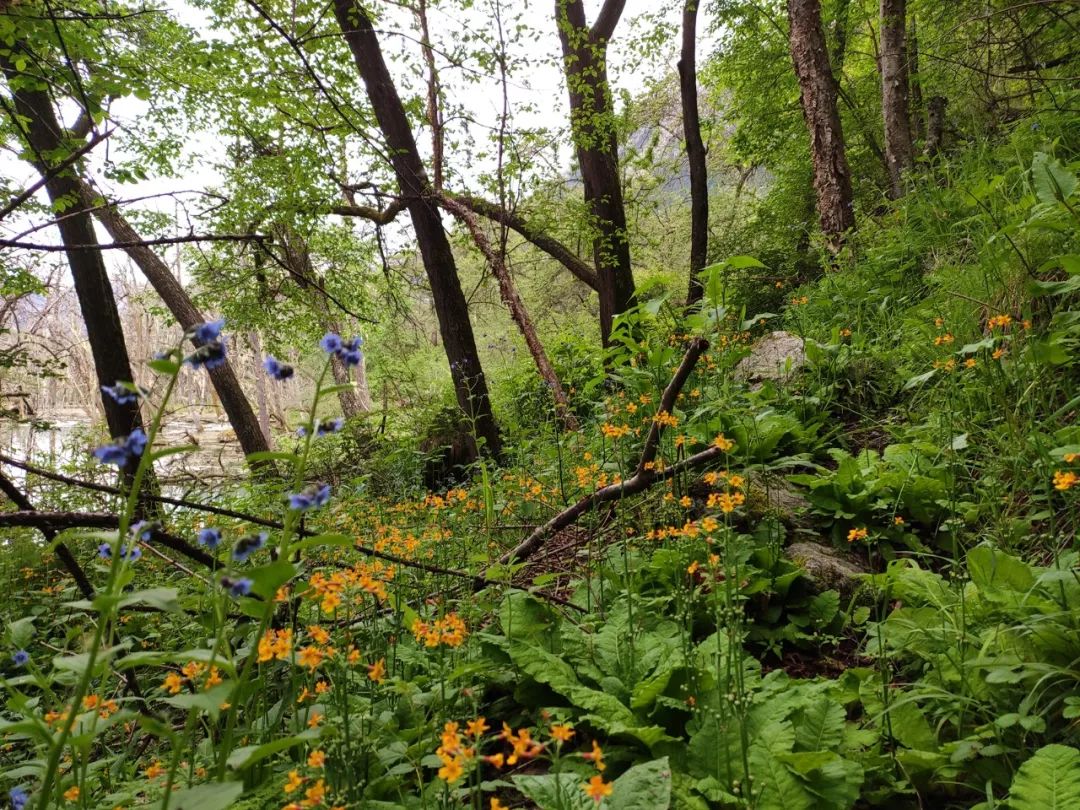 爬过红色的巨石,穿过层层灌木,我来到了一块儿生机勃勃的地带。山谷植被茂盛处,花的种类也繁多。有些是在别处也见过的,有些是在别处不曾遇见的。