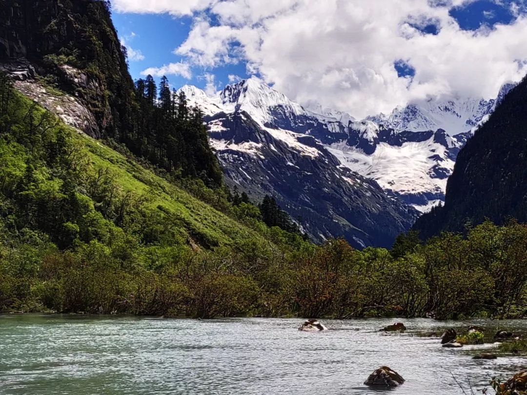 依照惯例,每天早晨的水墨画是鲁易线带给我的福利,而今天又多了一座雪山。这个雪山在河谷下游,它是海拔6170米的塔西朗隆。