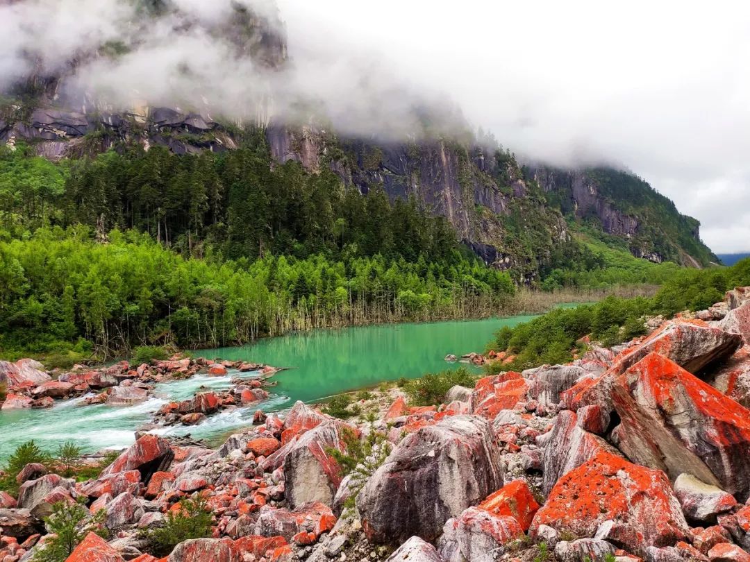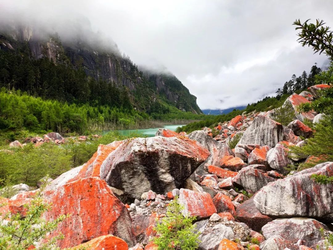 红绿交错的堰塞湖