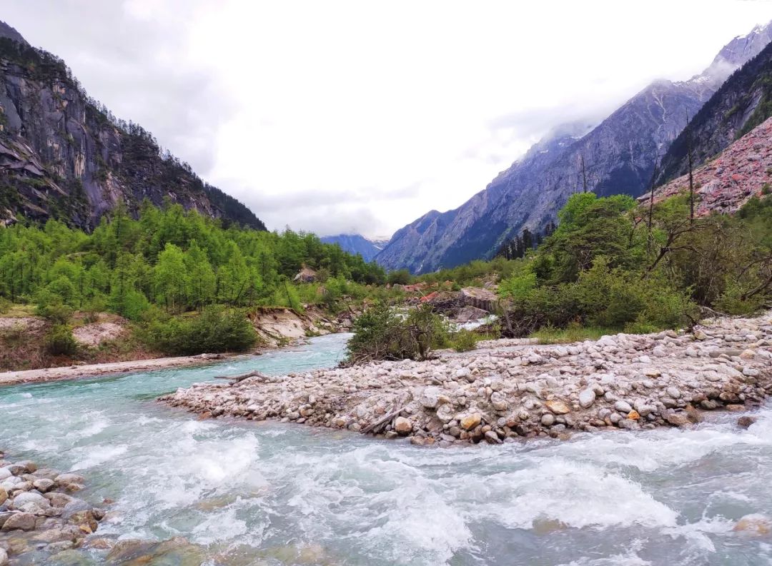 大概在这里拍了十多分钟就开始往营地走,返程也比较恼火,还要再次横渡刚才那条凶险的河,水流依然很急,但是没办法,硬着头皮过吧!又走到距离对岸还有两三米时,这次不是被冲倒了,而是拖鞋被冲走了。于是我光着脚踩着河里的鹅卵石走上了岸。由于走的比较着急,我的左腿骨也被河里的巨石磕了一下。二十分钟后回到了营地做饭烧水,结束了今天的徒步。