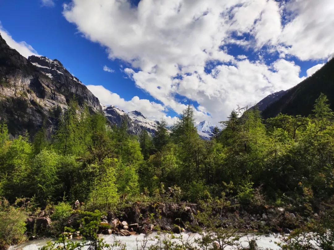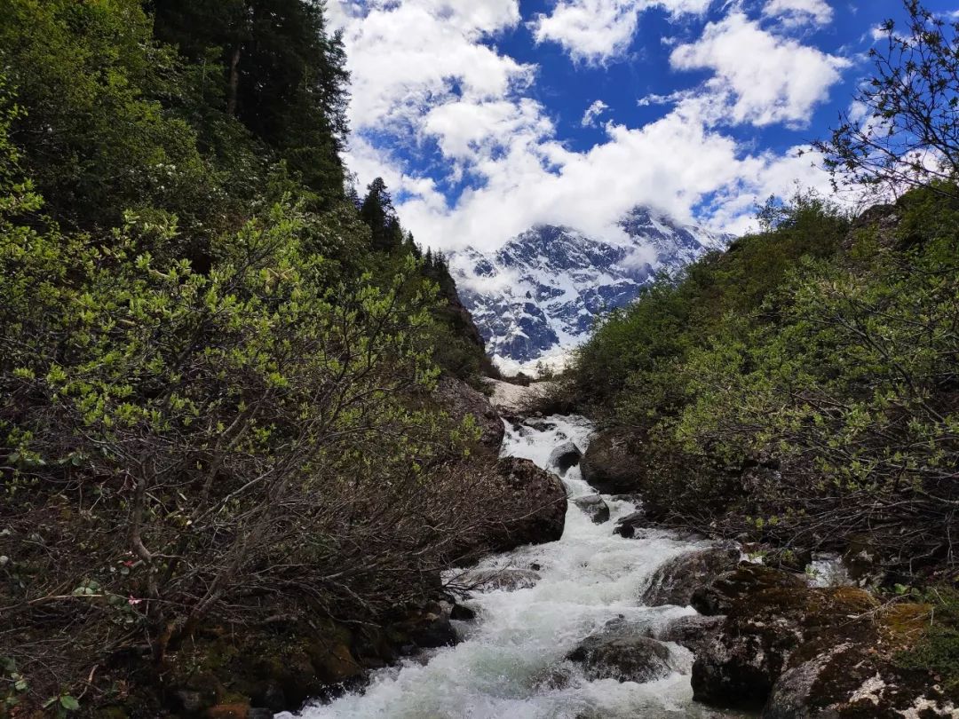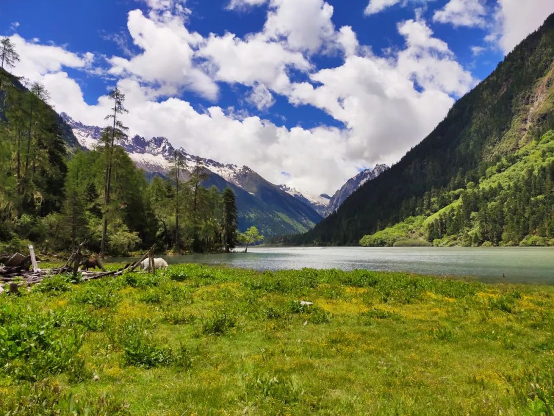 整个下午天气都很好,漫步在林间草场,听着泉水的叮咚,品闻着野花的芬芳,总有一种回到童年的感觉。偶然间抬头望向远方,雪山似乎在对我微笑。这一刻我是幸福的,感觉生活是如此美好,真希望这一刻永远定格。