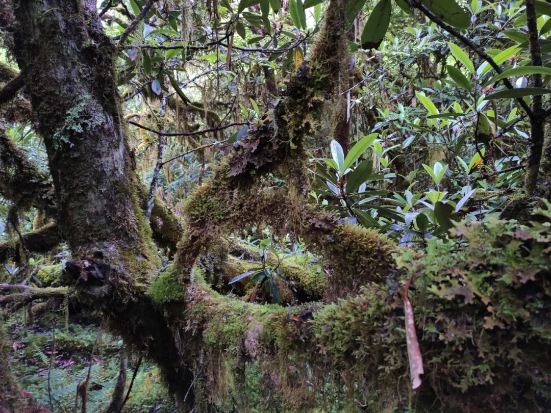 这个瀑布左右两边都是断崖,只能向上爬升绕过这个瀑布,经过半个多小时终于绕了过去。在这期间,由于杜鹃林长在了坡度很陡的地方,我经常摔跤。但每次摔倒后都能抓住它的树枝,不至于滑下树丛。