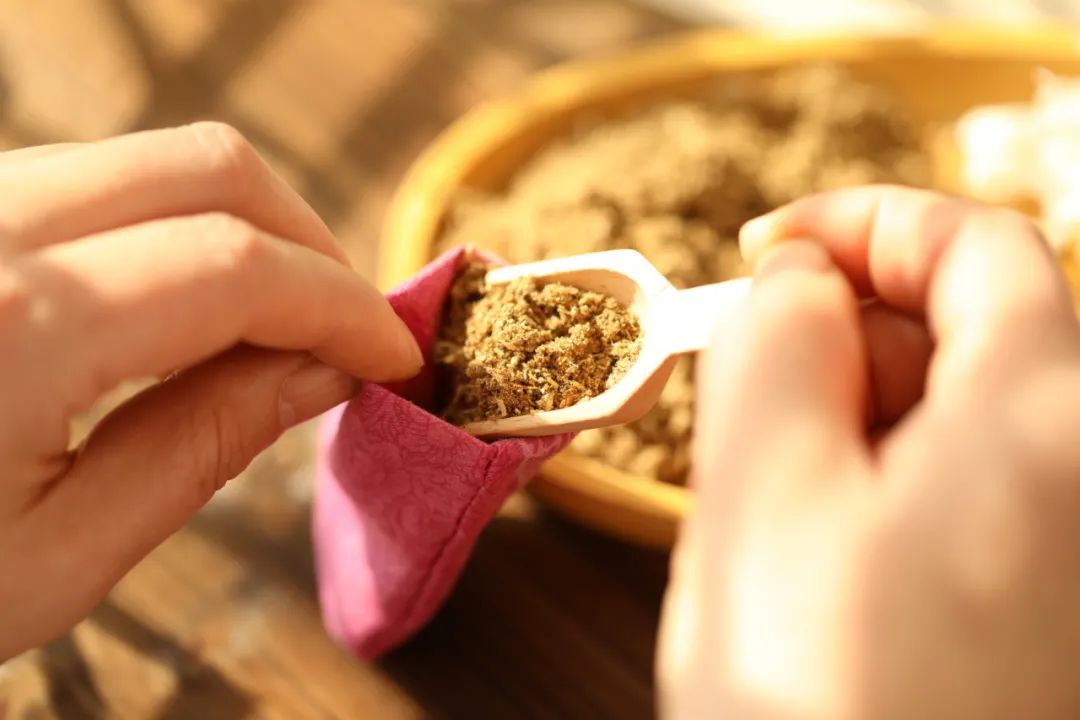 中医理念强调“治未病”,有很多古人记载流传下来的驱邪小方法。今天就和大家分享3个实用的,预防流感小方法。流感,中医里叫时行感冒,一般在冬春季节比较高发。古书有记载:“时行病者,是春时应暖而反寒,非其时而有其气。”为什么流感在春天传播性、传染性这么高呢?这和春天多风的季节性分不开。一是外界的空气环境。病毒在空气里传播,是需要有载体的。风就是载体,它最大的特点就是,喜欢伙同寒、湿、热搞联盟进攻。而风又有无孔不入、善行、数变的特点,我们不知道这阵风要吹到哪里去。它就像一个个小飞船带着病毒邪气到处飞舞,游走不定,因此流行性高。二是宝宝自身的免疫力。一个幼儿园班级,可能大多数小孩都在感冒发烧咳嗽,但就是有一些没事的,这就是每个宝宝的正气值不一样。流感病毒有很多种,一个一个把它们杀死麻烦又费力,中医就统一归为邪气。抵抗邪气的力量,就是正气。其实每个宝宝的身体体表,就自带了一层保护色,叫做“卫气”。它像边防战士巡逻守卫一样,把流感病毒抵挡在外。所以预防流感,重点不是杀死病毒 ,而是做好这2件事:保持洁净的空气环境减少传播+增强宝宝自身的正气。“香者,气之正,正气盛则除邪辟秽也”。古人一直有随身佩戴香囊,芳香避秽除邪的习惯。香囊源自中医的“衣冠疗法”,利用天然草本的挥发油,在宝宝的口鼻周围形成一个高浓度小环境,从而驱除想要从口鼻进入的病毒邪气。针对初春流感病毒多风又带有寒和湿的特点,今天分享给妈妈的防感香囊,主要以提升正气、驱散风邪、芳香化湿为搭配重点。艾草被李时珍称为“纯阳之草”,苍术能“避一切恶气”,这俩是空气消毒法的主角。直到现在,很多地方都保留了岁旦岁末烧艾叶苍术以避邪气的风俗。再加上温中助阳的公丁香和高良姜,这4味草本就组成了阳气小分队,专门负责消灭空气中的寒湿邪气,提升宝宝身体的正气。薄荷和苍术的香气有驱散风邪的作用,拿在手上靠近鼻子一闻,有一种头脑通透的感觉,就像开了一扇窗,把污浊空气统统换掉。佩兰、藿香、石菖蒲还有草果,它们的香气有健脾化湿的作用。湿气困脾,让宝宝的脾气不能上升。清代吴达《医学求是》说:“脾燥则升”,这4个芳香化湿的草本,就负责扶一把宝宝的脾气。这样搭配好的香草磨成粉,整体散发出来的是一种木质药香。闻到这个香气,会有一种悬着的心被平稳安放下来的感觉,很安心。