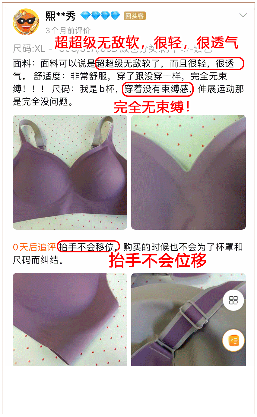 有粉丝觉得太舒服,整整买了五件呢!还说要慢慢把内衣都换成它。