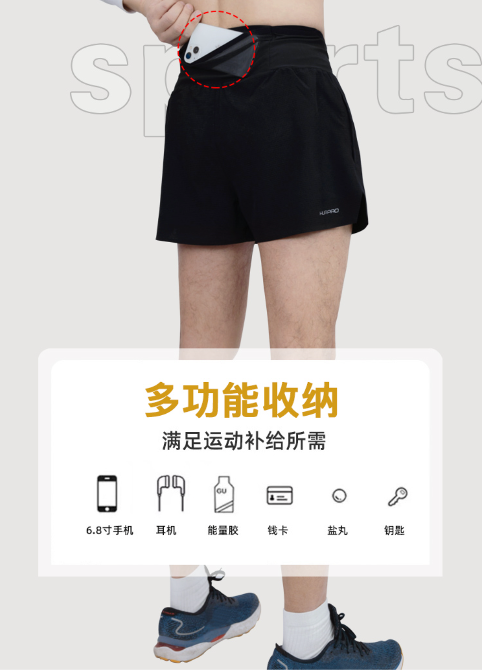 1.前置弹力网纱多口袋设计,后腰设置拉链口袋设计,手机、纸巾、钥匙毫无压力尽管装。