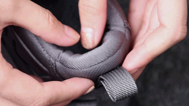 鞋尾有个可以勾住的鞋带,方便穿脱。可以看到鞋尾是有一定的厚度的,可以起到保护脚踝的作用。