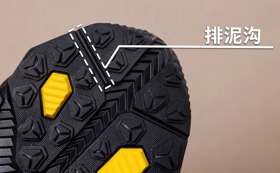 排泥沟是浅浅的一条,能够有效排泥,减轻鞋子的重量,行走间就能更加轻松。