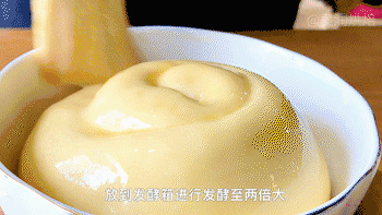 面团发酵到两倍大,刷上蛋黄液