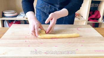 每一份搓成长条状从一端卷起,盖上保鲜膜