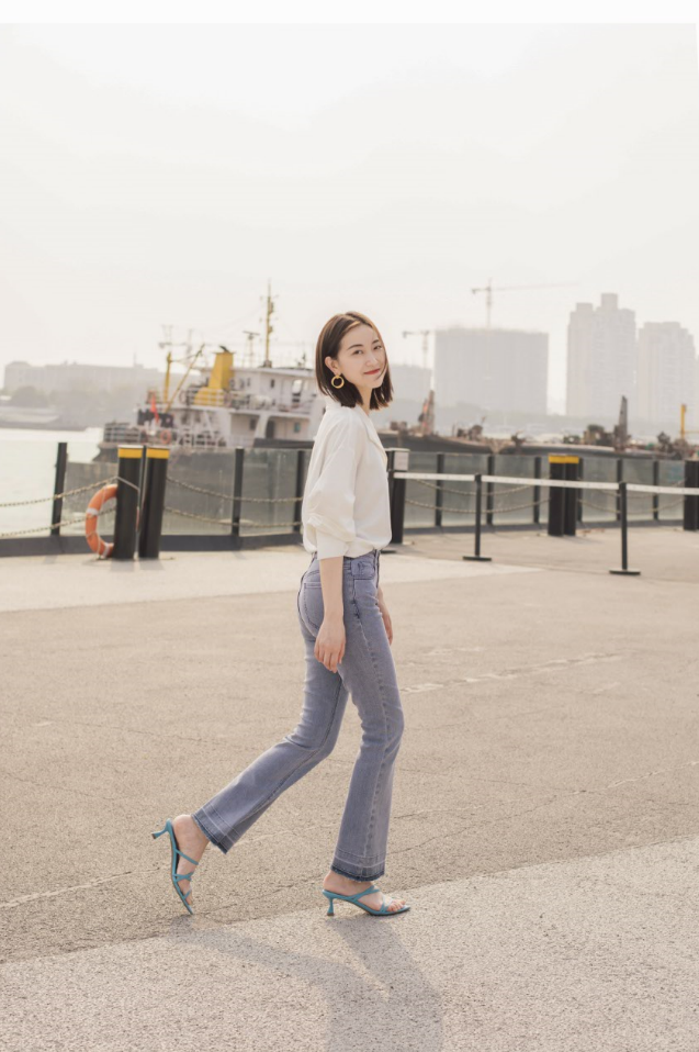 白衬衫+牛仔裤的组合一直都是最简单又最不容易出错的通勤穿搭!这款库马丝大翻领白衬衫既有男友风衬衫的干练感又有宽松落肩的设计,帅气又优雅~搭配性很强,下装搭一件超显高显瘦的浅蓝高弹微喇牛仔裤就是一套时髦通勤look啦!