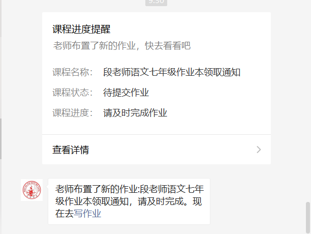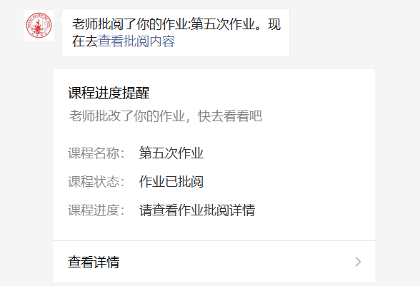 3、作业完成后老师会批阅,由微信公众号推送消息要及时查收。