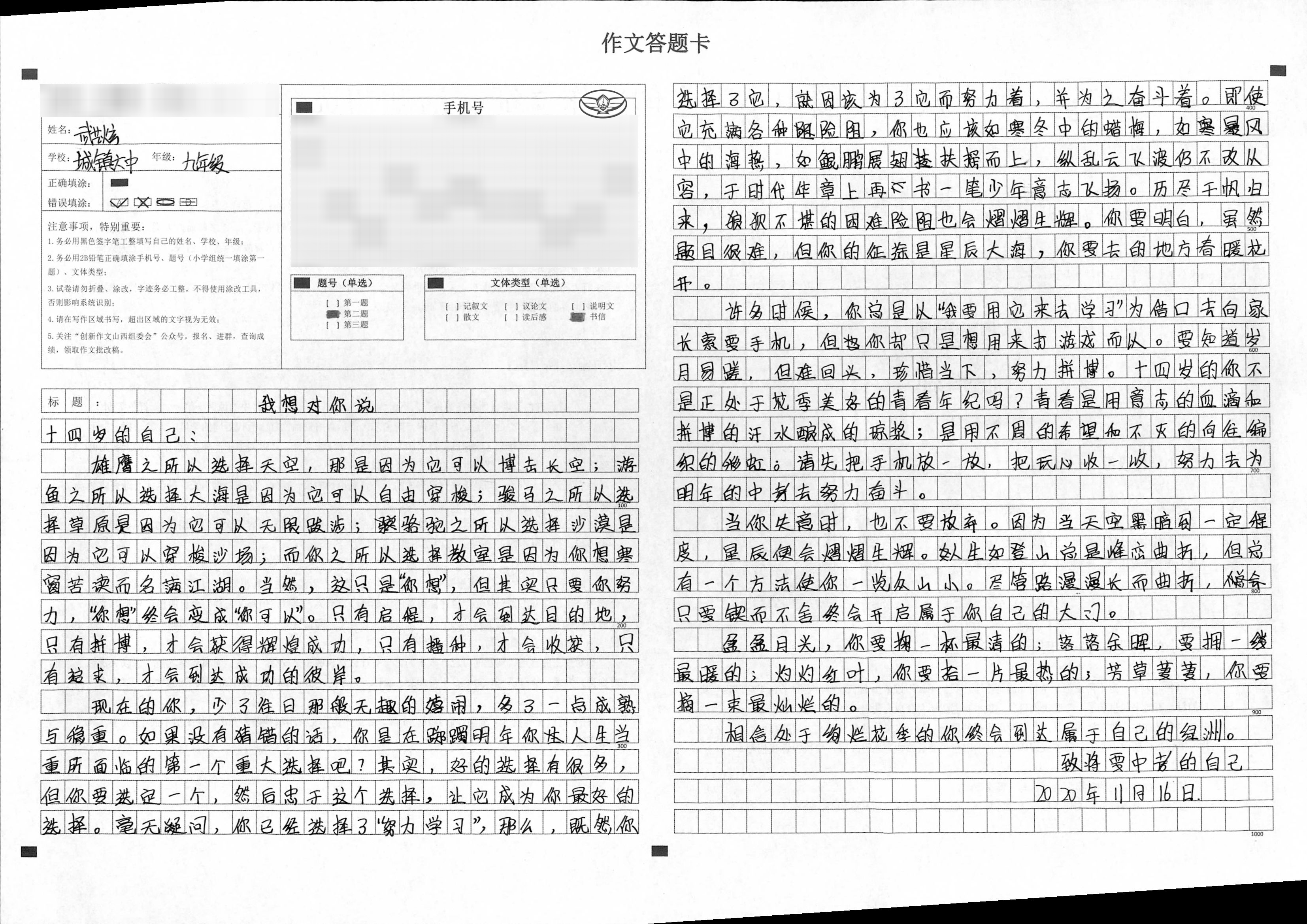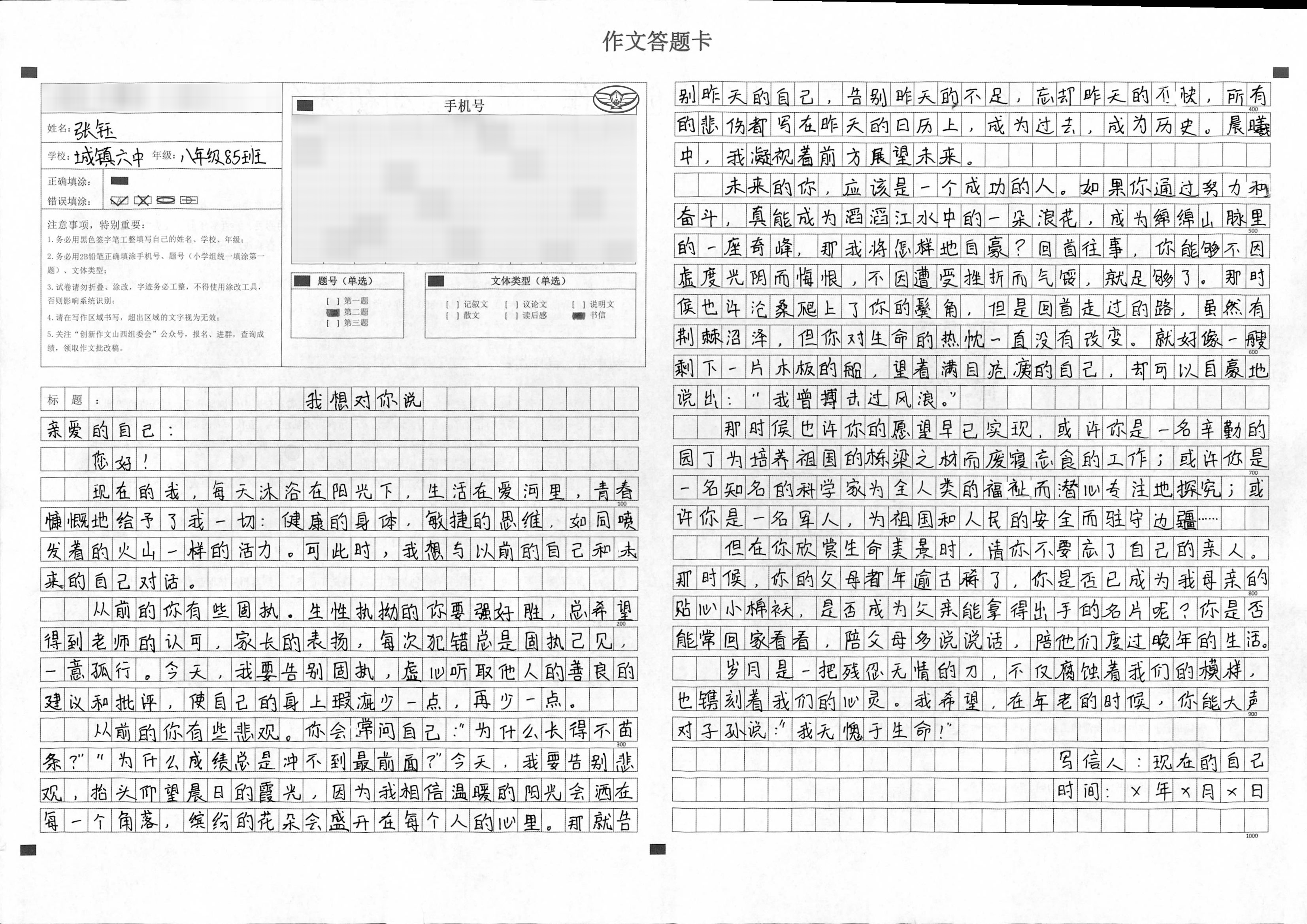 积极的人像太阳,找到哪里哪里亮。而消极的人就如月亮,初一十五不一样。2021年我会面对人生中第一个重要的转折口---中考。所以一看到这个题目,我就毫不犹豫的给即将中考的自己写了一封勉励信。我明白,同寒窗苦读去,我怎能自愿甘拜下风?我的征途是星辰大海,我要去的地方春暖花开,半山腰总是最挤的,我一定要去山顶看看。针对现阶段贪玩的自己以及考试时的失利,我想说我一定要坚持下去!我不会去摘月亮,因为我要月亮奔我而来。即使前路挫折重重我也要披荆斩棘如鲲鹏展翅专扶摇而上,于时代华章上在抒一笔少年意志飞扬!即将中考的自己,一定要加油!我会成为自己的太阳,无需凭借谁的光。