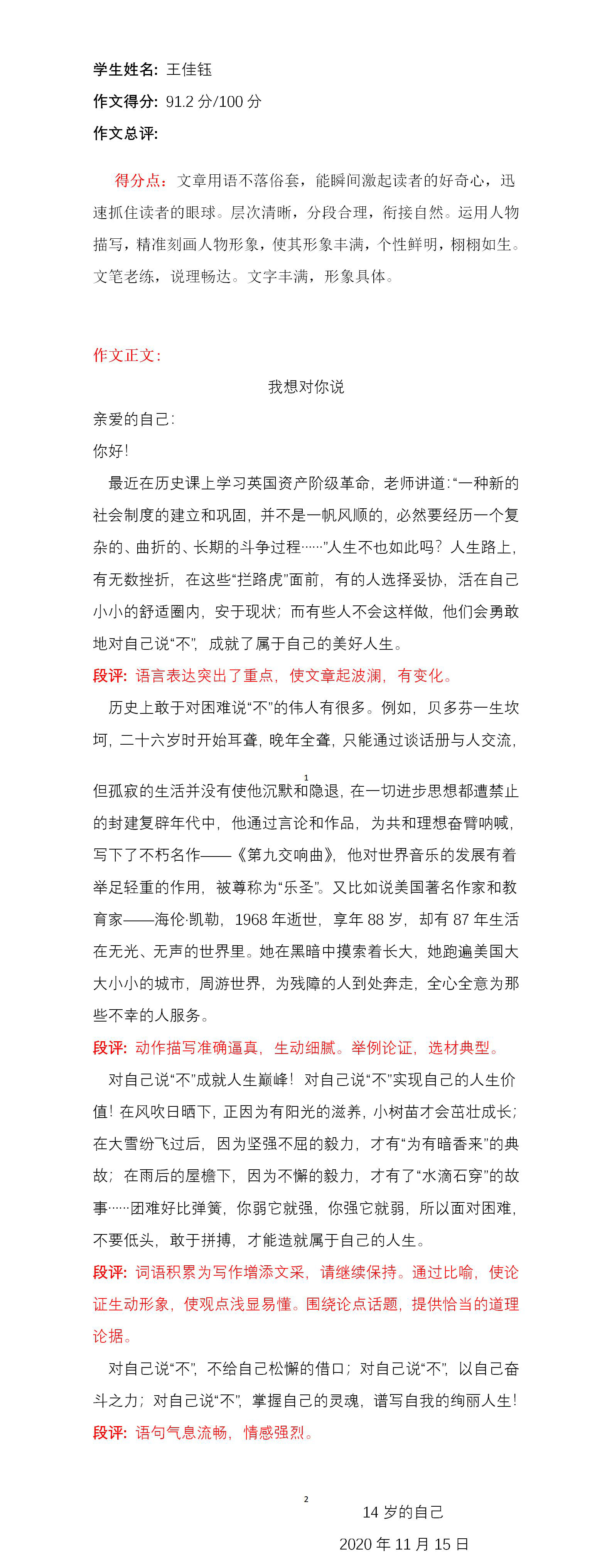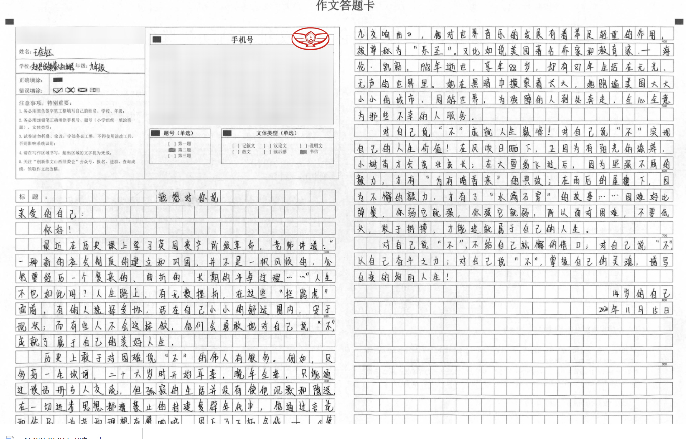 大家好!我是王佳钰同学的家长,首先感谢本次创新作文给孩子们提供了这样一个展示才华的平台;其次,我觉得在生活中,我们家长要注重培养孩子观察生活、感悟人生的良好习惯,学会触摸生活的瞬间,引导孩子多读多思多练,相信孩子会获得更好的成长!