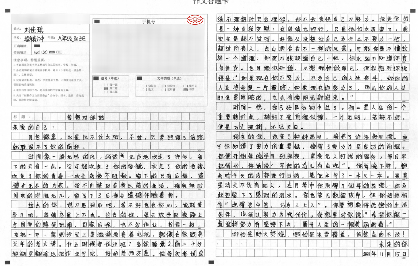 看到这个题目我便想到用现在、过去以及未来的自己作为贯穿全文的线索构思全文。