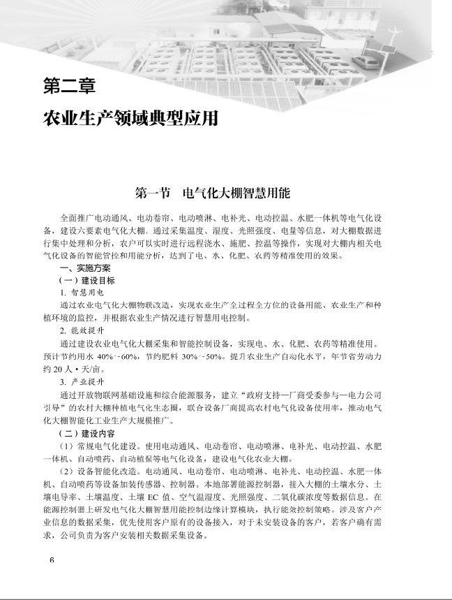 本书重点围绕农业生产、乡村产业、农村生活和供电服务四大领域,充分总结提炼示范项目可复制可推广的经验、模式和成果,编制了《设备蔬菜大棚电气化技术标准》《设备蔬菜大棚智能化技术标准》《蔬菜大棚电气化改造典型设计》等技术标准、研发了AECⅠ(Ⅱ、Ⅲ)型能源控制器等技术产品,形成了《一种云边互动智慧大棚用能控制系统》等专利成果,希望对从事乡村电气化工作的读者提供参考帮助,更希望读者在本书的启发下,能在今后的乡村电气化工作中取得更大的成绩,为乡村振兴贡献自己的力量。