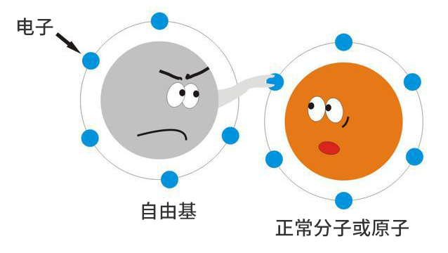 氧化,其实就是氧元素与其他物质元素发生的化学反应,这里必须提到“自由基”,自由基是动物(包括人)生命体中特有的一种带电的结构,是在细胞外层轨道上含有一个或者是一个以上并未配对电子的原子、离子团或者分子。
