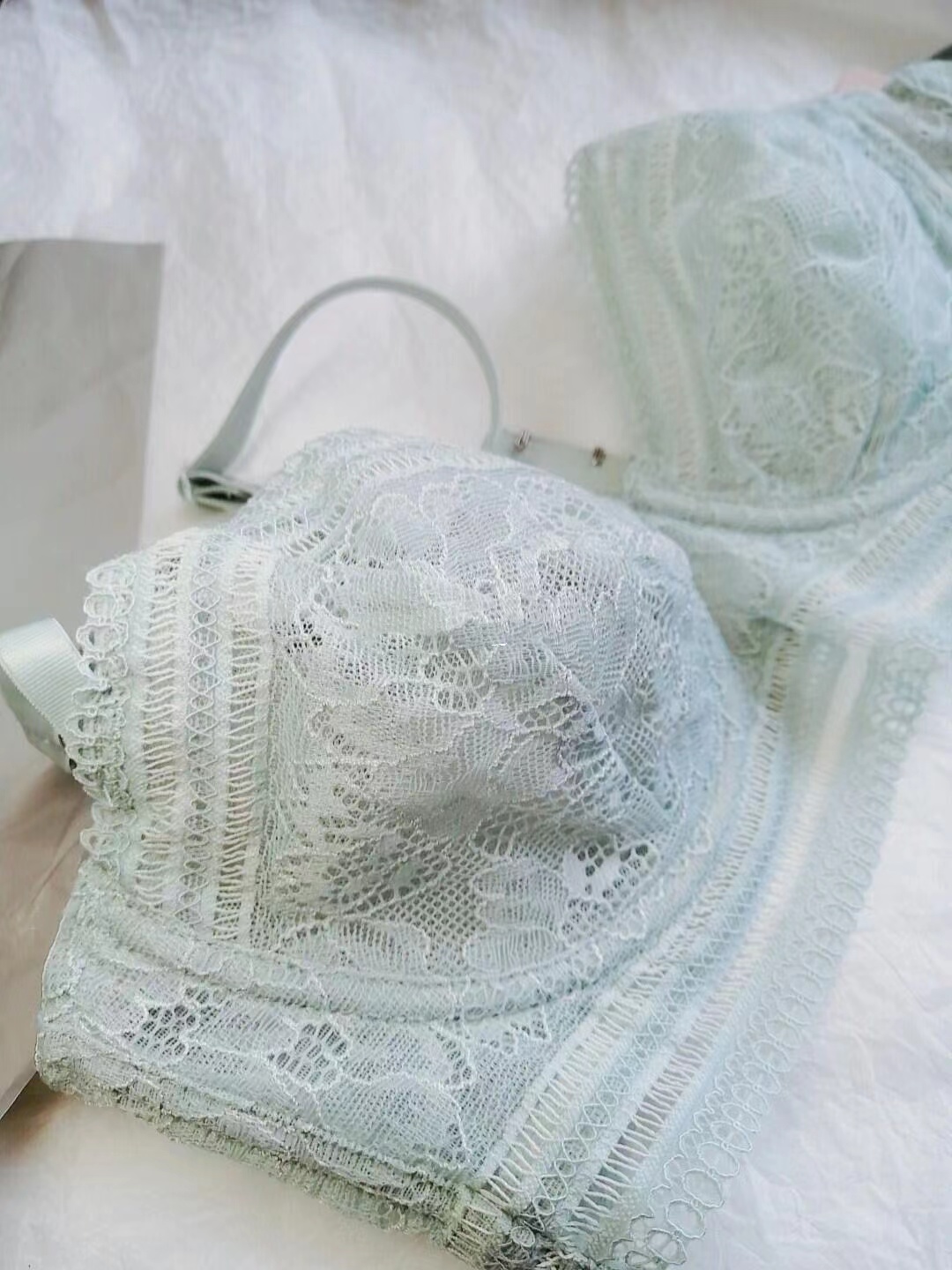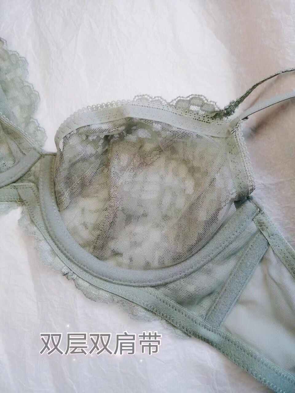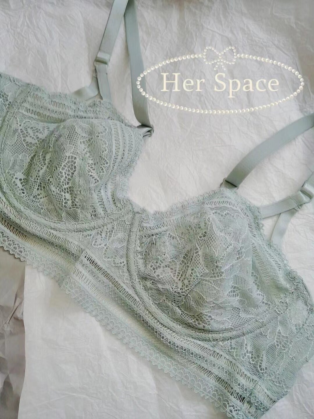 首先是这款Her Space系列,全蕾丝太美了有木有,敲适合春夏穿哦~它是三角杯形,包裹性很好的,即使是大🐻姐妹也不怕啦~这个颜色也很美有木有,夏季森系,林间小鹿🦌~