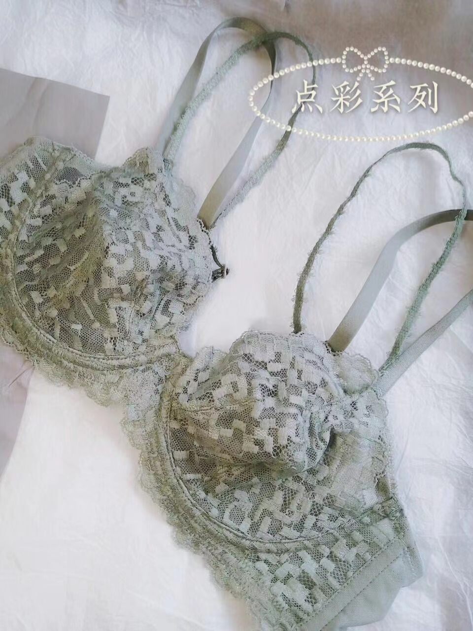 还有这个点彩系列的遐内衣,同样也是蕾丝造型,不过它是双肩带双层的呦,提拉承托更好一点,也适合大🐻的仙女啦~它的双肩带设计,就算是穿一些一字肩或者抹胸的衣服也不会突兀,反而增添了神秘感~颜色也同样很夏天~