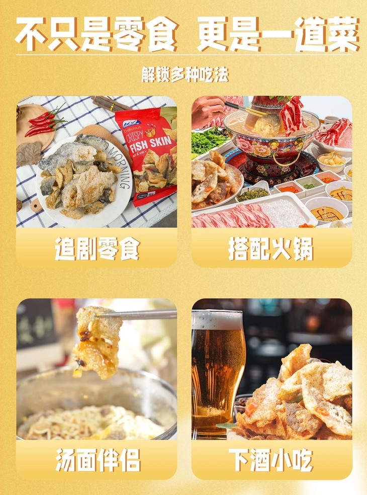 不管是家人聚餐,还是朋友聚会,生日分享,大袋鱼皮脆,想怎么吃就怎么吃🐟😍