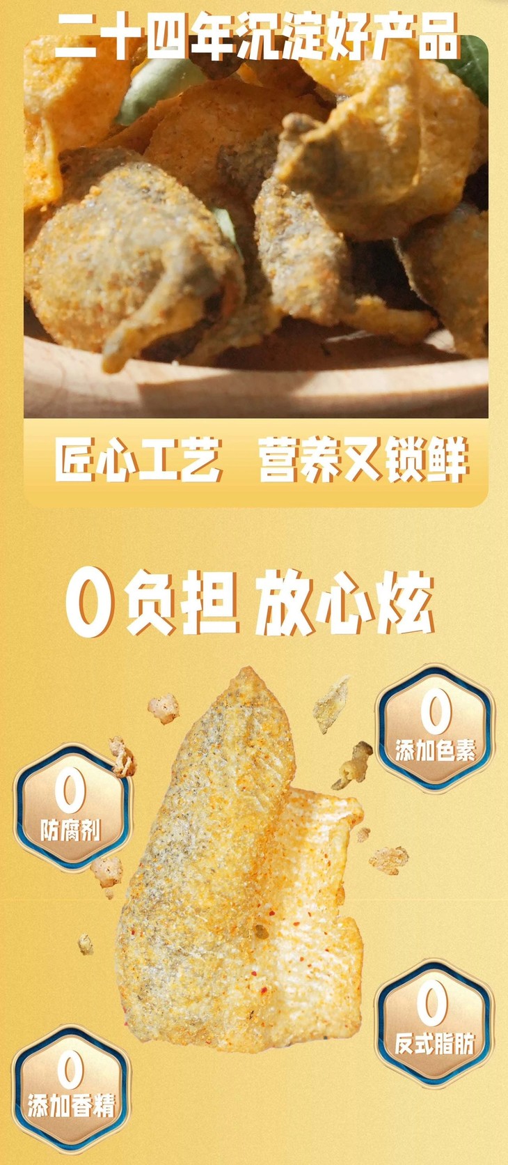 完美地保留了鱼皮的营养,同时又赋予了它无与伦比的酥脆口感!