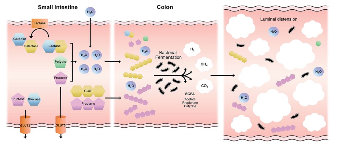 因此,它们在小肠中能够吸收水分,聚集大量的液体;而在大肠中能够被细菌发酵,产生大量的气体。