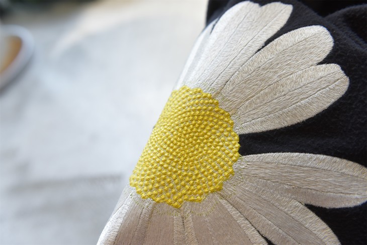 背后一个硕大的小雏菊刺绣