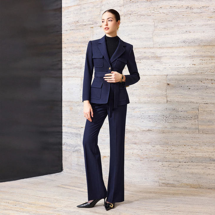 藏青色英伦风西装套装:秋冬职场的 “智感蓝调” 名片