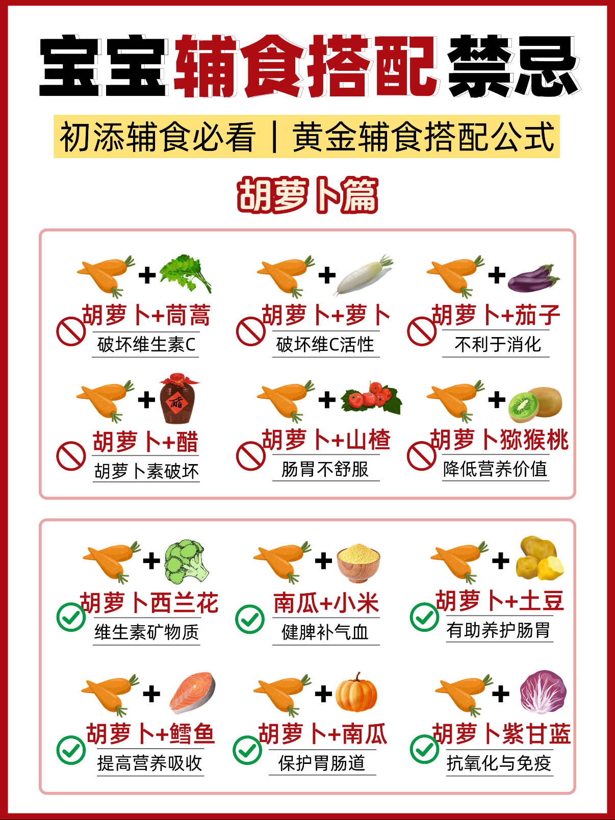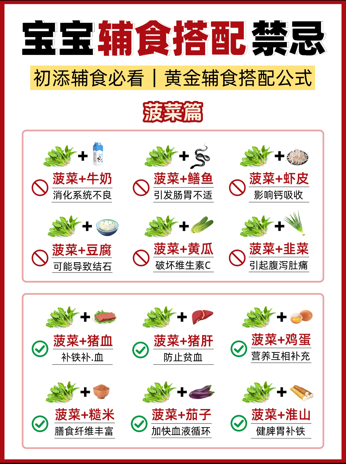 宝宝六个月左右就可以开始添加辅食了,但不是什么食物都可以一起吃的❌