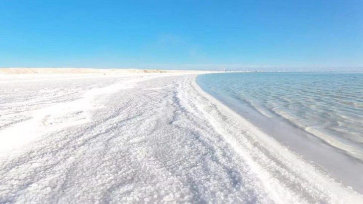 3100米茶卡盐湖自然结晶的湖盐