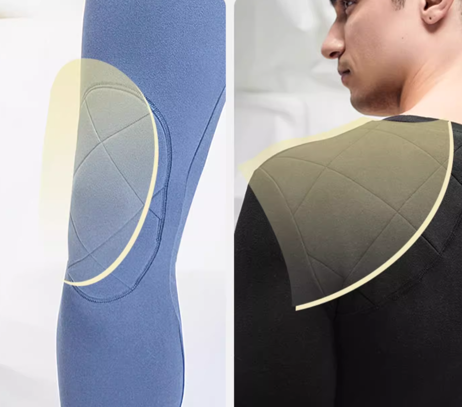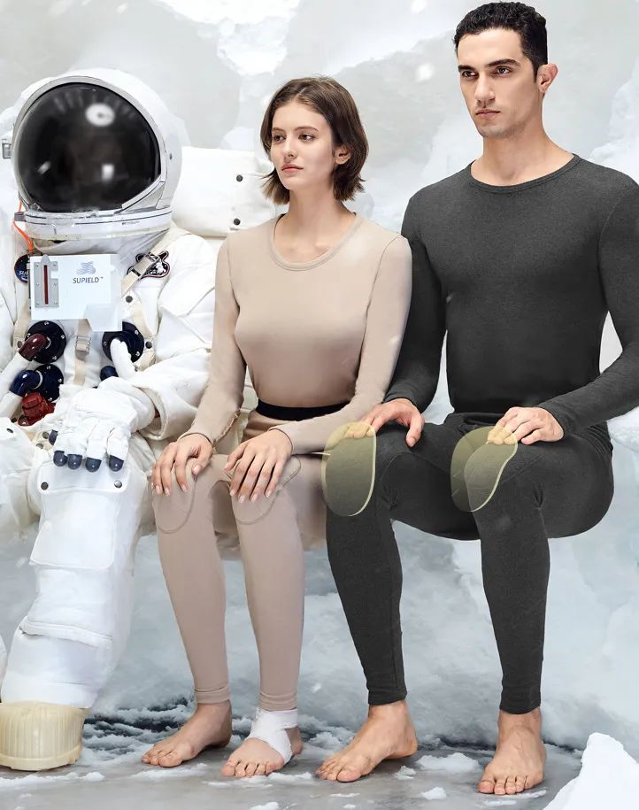 考虑到这一点,素湃保暖衣专门在肩、膝盖这些易寒部位做了气凝胶加倍锁温。