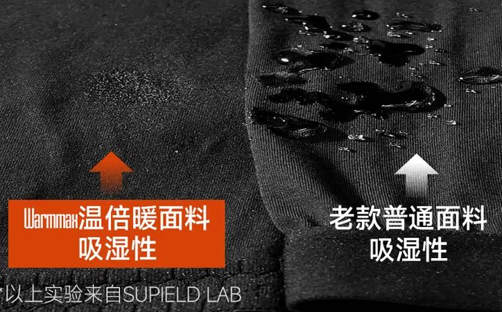 看,同样是泼上去一杯水,素湃保暖衣上的水眨眼的功夫就被吸收了!